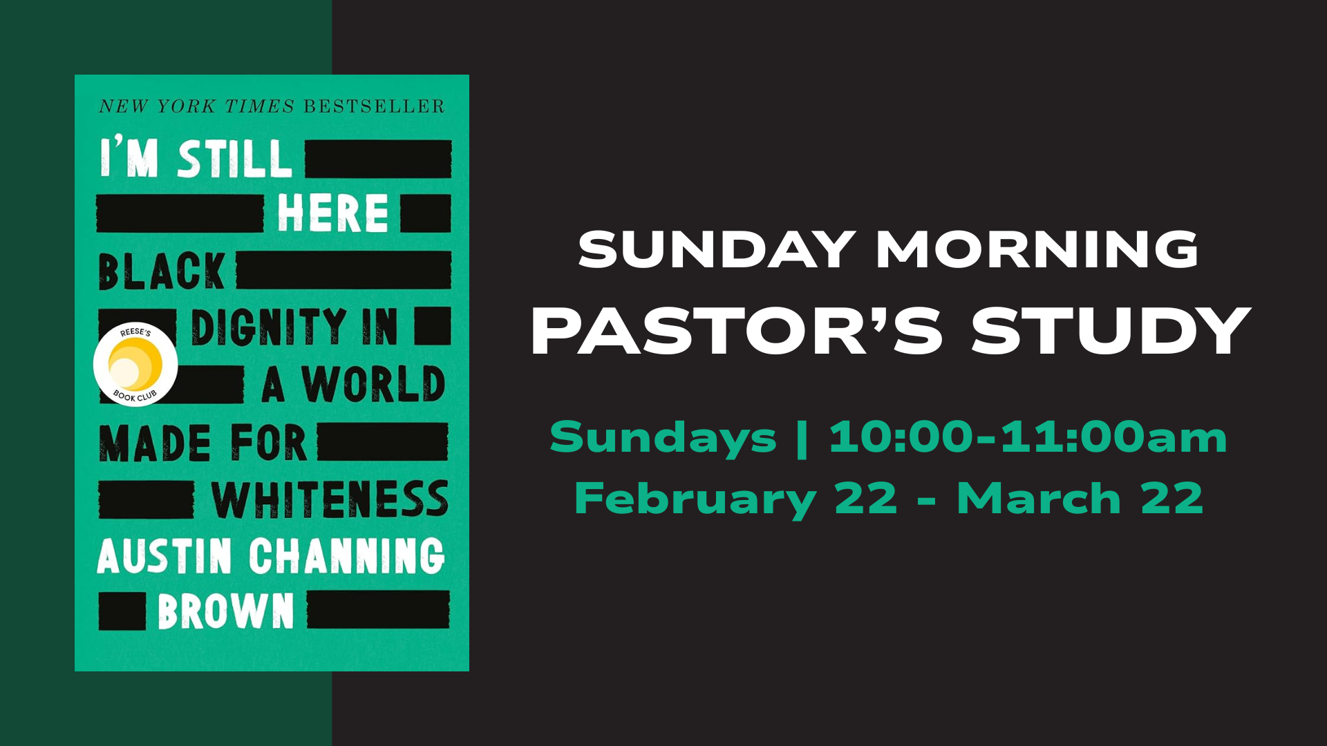 Sundays | February 22 – March 22 | 10:00-11:00amBlack History Month is not just a celebration of resiliency, but a commemoration of meaningful contributions. Join Pastor Joshua for a six-week book study exploring I'm Still Here by Austin Channing Brown, an honest and compelling reflection on faith, identity, and belonging. Together, participants will explore what it means to keep showing up faithfully in spaces that were not built with everyone in mind. P.S. - No expertise required. It is best for you to purchase the book and read along with this study, but don’t let that stop you from joining the discussion. For questions or more information, please contact Pastor Joshua at joshua@grace380.org.