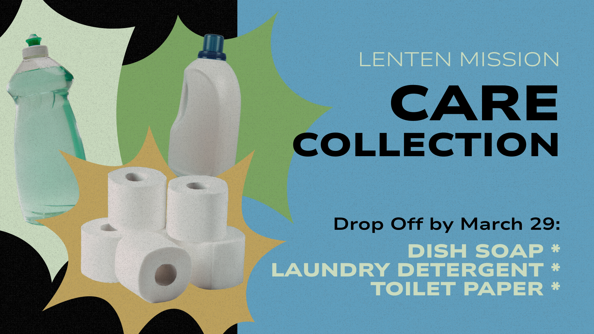 Drop Off by Sunday, March 29: Dish Soap, Laundry Detergent, & Toilet Paper
