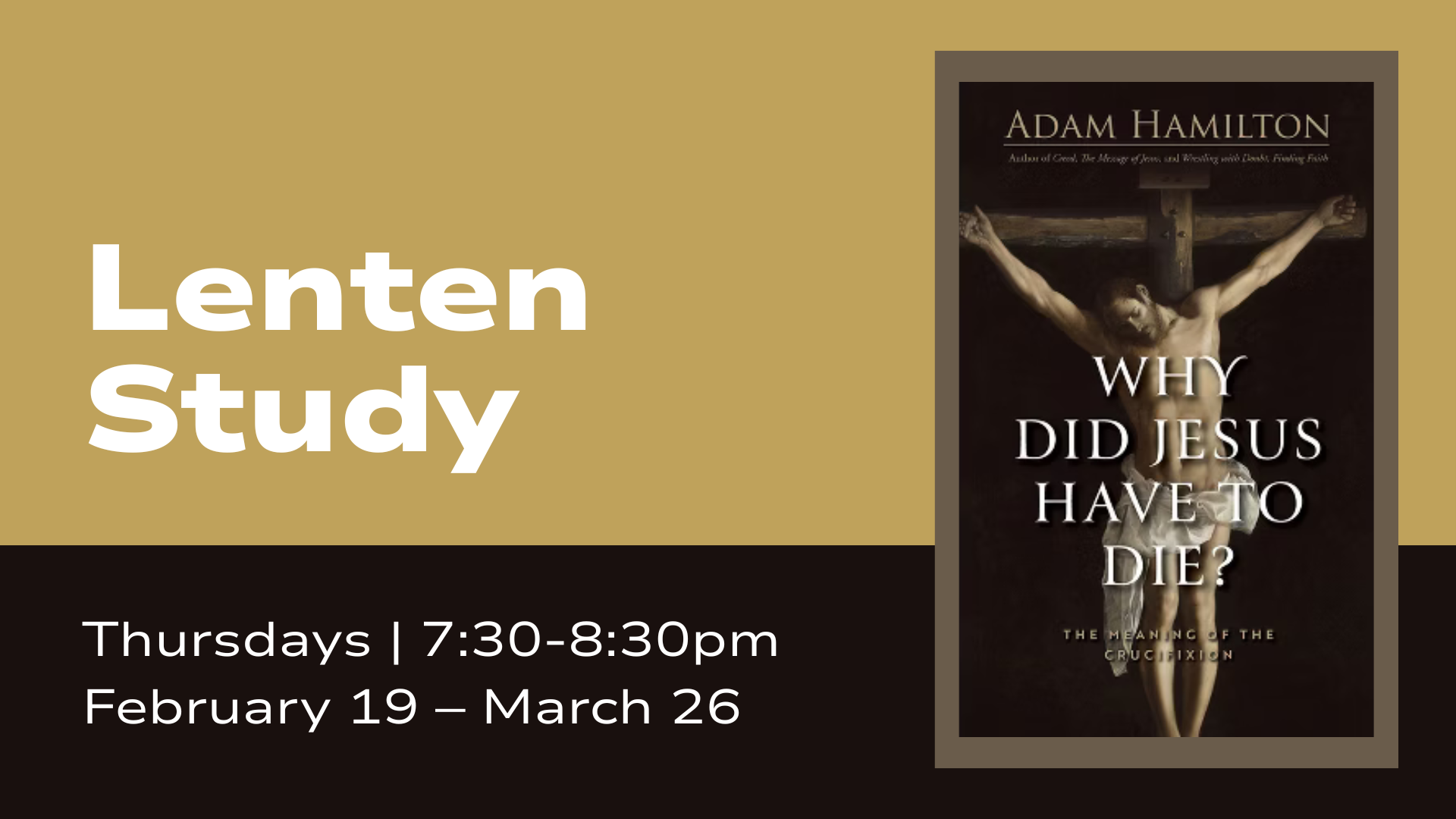 Thursdays | February 19 – March 26 | 7:30-8:30pmDuring the season of Lent, we are opening our usual women’s study time to everyone in the church. All are invited to join this thoughtful and engaging Lenten study. Although the crucifixion stands at the very center of Christian faith, the New Testament offers few clear explanations of exactly how Jesus’ death saves us—or why it had to happen this way. Instead, the biblical writers use a rich variety of images and metaphors—ransom, sacrifice, reconciliation, victory—without fully explaining how they work. What if the problem isn’t a lack of answers, but the questions we’ve been asking? What if the cross is not a transaction to be solved, but a living Word from God meant to shape who we are and how we live? Our conversations will be guided by Adam Hamilton’s book Why Did Jesus Have to Die? Purchasing or downloading the book is encouraged, but not required. As always, you are welcome to participate even if you are not able to keep up with the reading. For questions or more information, please contact Pastor Kim at kim@grace380.org.